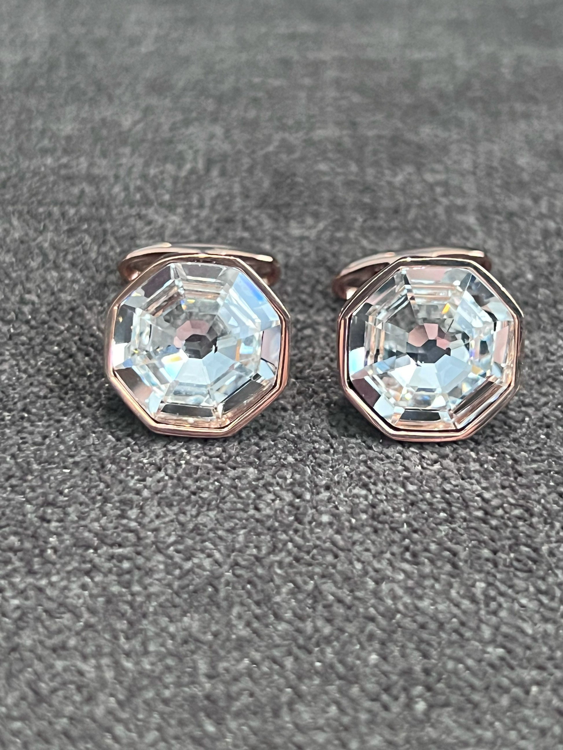 White crystal set in rose gold-tone cufflinks