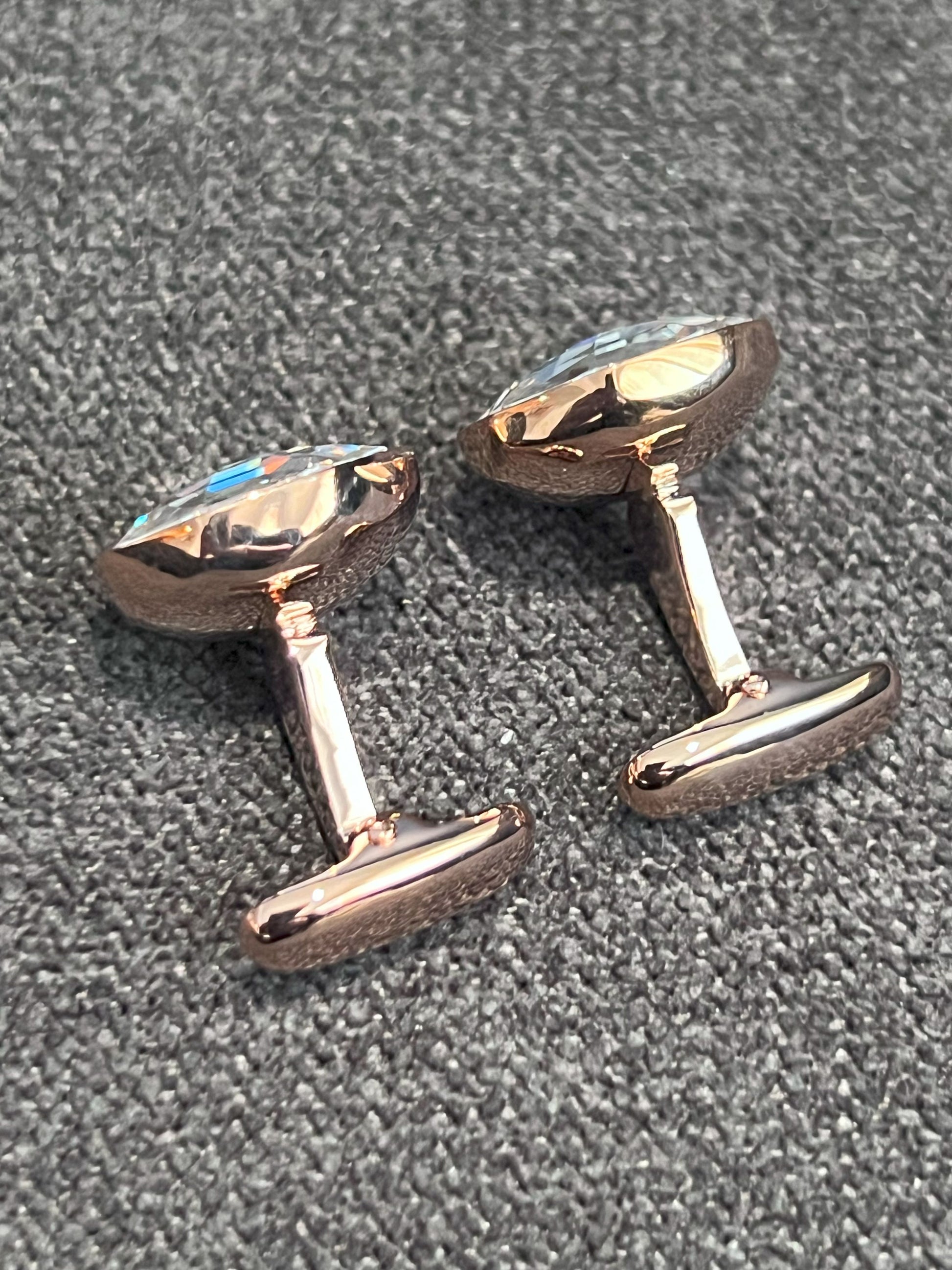 These rose gold-tone cufflinks, adorned with white crystal, exude luxury and sophistication. They're a fine example of exquisite jewelry at an affordable price, making them a sought-after accessory for those seeking elegance without breaking the bank.