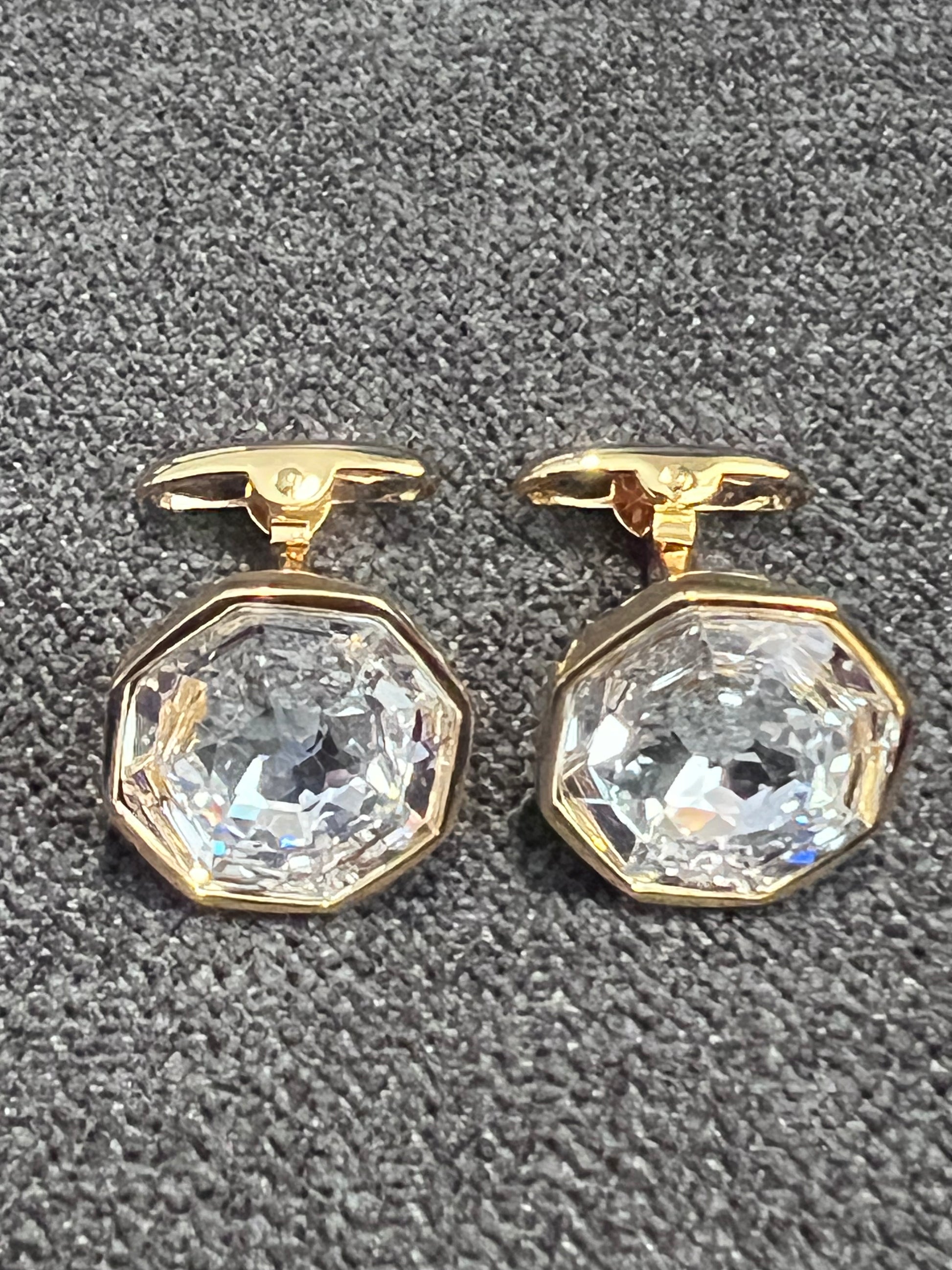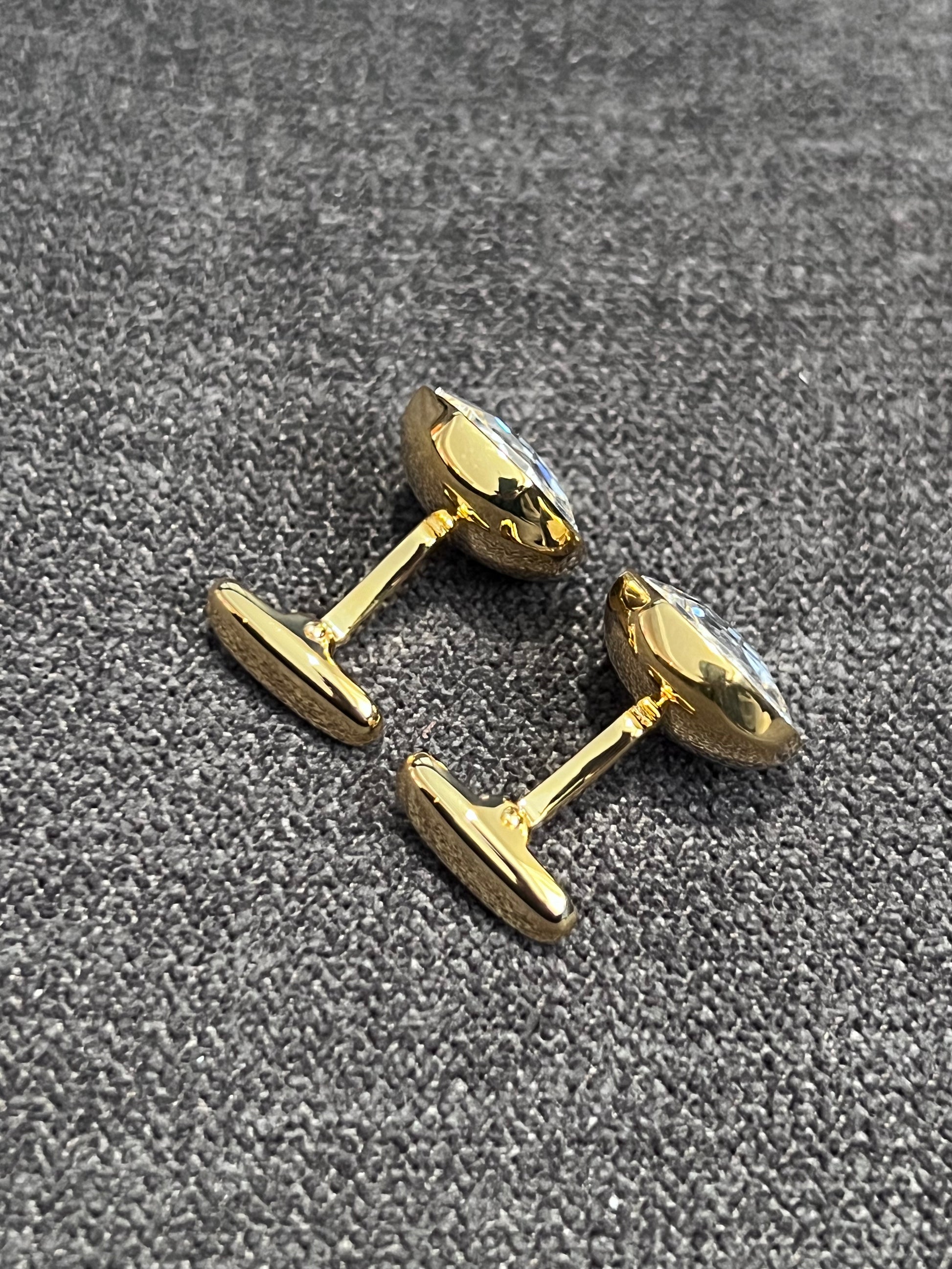 These yellow gold-tone cufflinks, adorned with white crystal, exude luxury and sophistication. They're a fine example of exquisite jewelry at an affordable price, making them a sought-after accessory for those seeking elegance without breaking the bank.